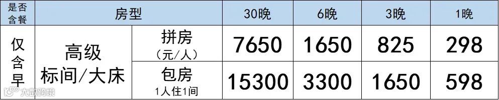1、如居住少于3晚,按照单天价核算,退改按照退改政策执行;男女拼不上房均需按包房价计算。