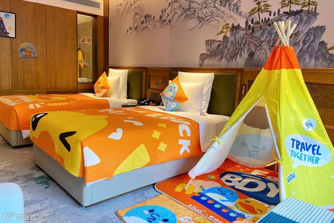 你可以选择:B.duck小黄鸭、小熊尼奥、海底小纵队等不同风格亲子房