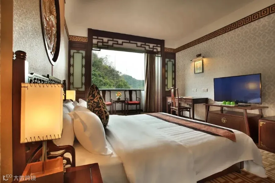 坐拥桂林核心景区: 饭店直接坐落于桂林市中心桂湖之畔,与榕湖、杉湖共同构成“两江四湖”环城水系的核心部分。推窗即是景,出门便入画。