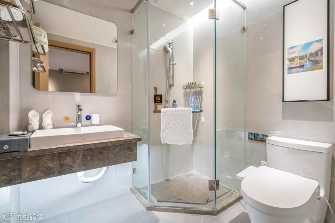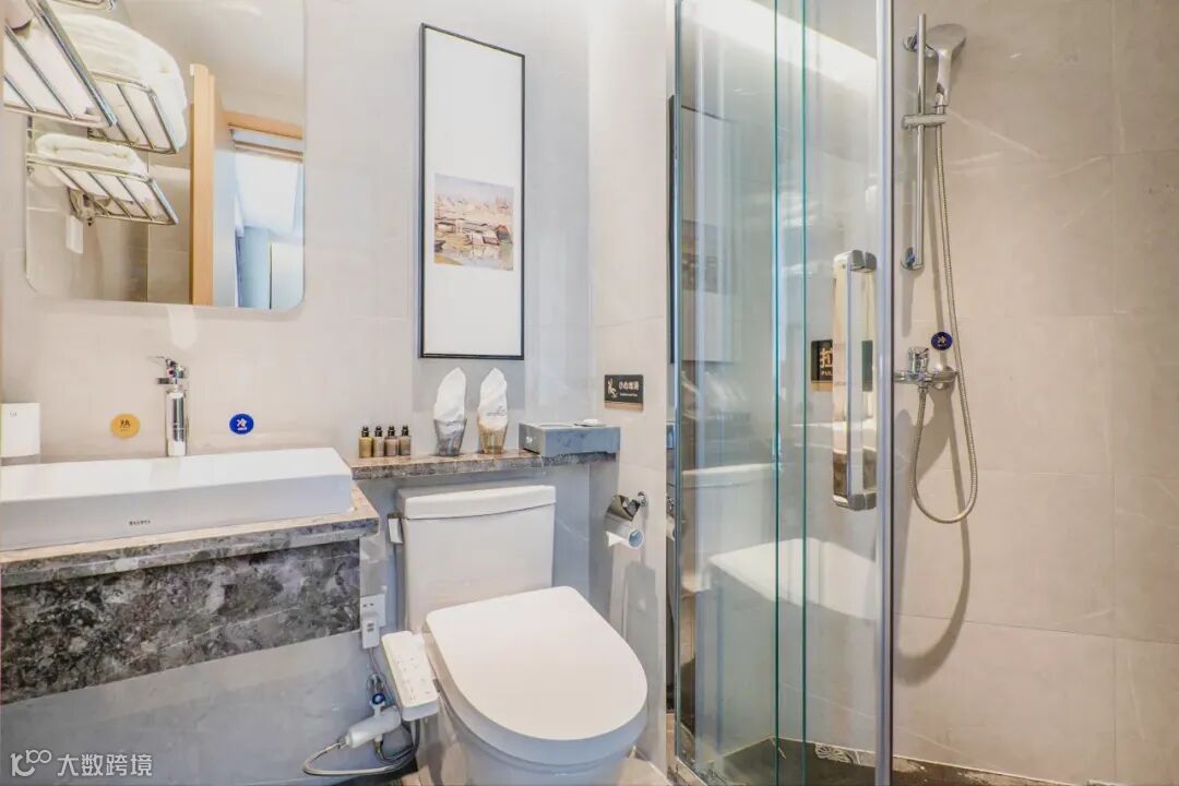 酒店配备智能客控,科勒品牌卫浴、电动窗帘、蓝牙音箱、高品质态度系列洗漱用品,同时还配备自助洗衣机等配套服务,是您到出差、旅行、休憩的优选住所。艺术卫生间,智能马桶盖负离子电吹风、全系TOTO卫浴,一切皆净