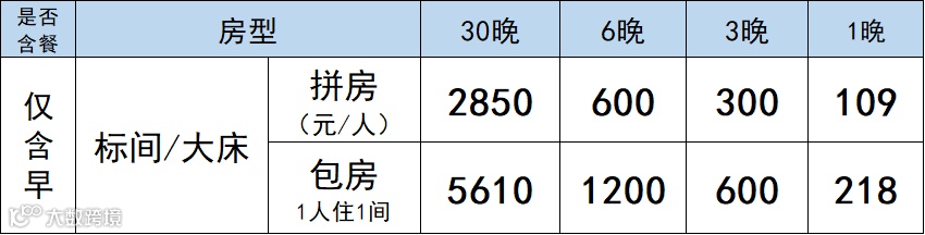 1、如居住少于3晚,按照单天价核算,退改按照退改政策执行;男女拼不上房均需按包房价计算。