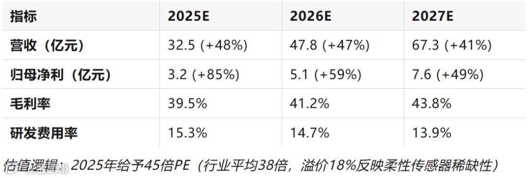 如果上述计划顺利完成,根据现有订单及产品测样结果,预计2025年,汉威科技机器人传感器业务营收有望达到9.8亿元(占汉威总营收30%),推动国产替代率从12%提升至28%。