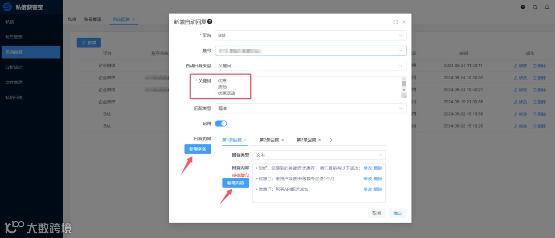 然而,使用手机还是PC端在各个平台间切换并逐条手动回复,不仅耗时又容易遗漏,从而错失部分客户的私信和成交机会。