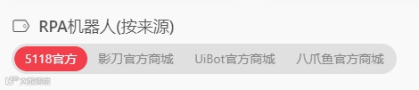 RPA机器人(按来源)包含:5118官方、影刀官方商城和UiBot官方商城。