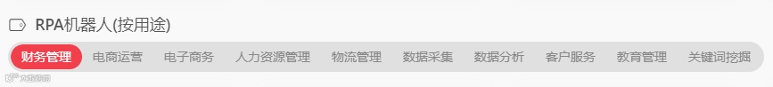 RPA机器人(按用途)收录:财务管理、电商运营、电子商务、人力资源管理、物流管理等。
