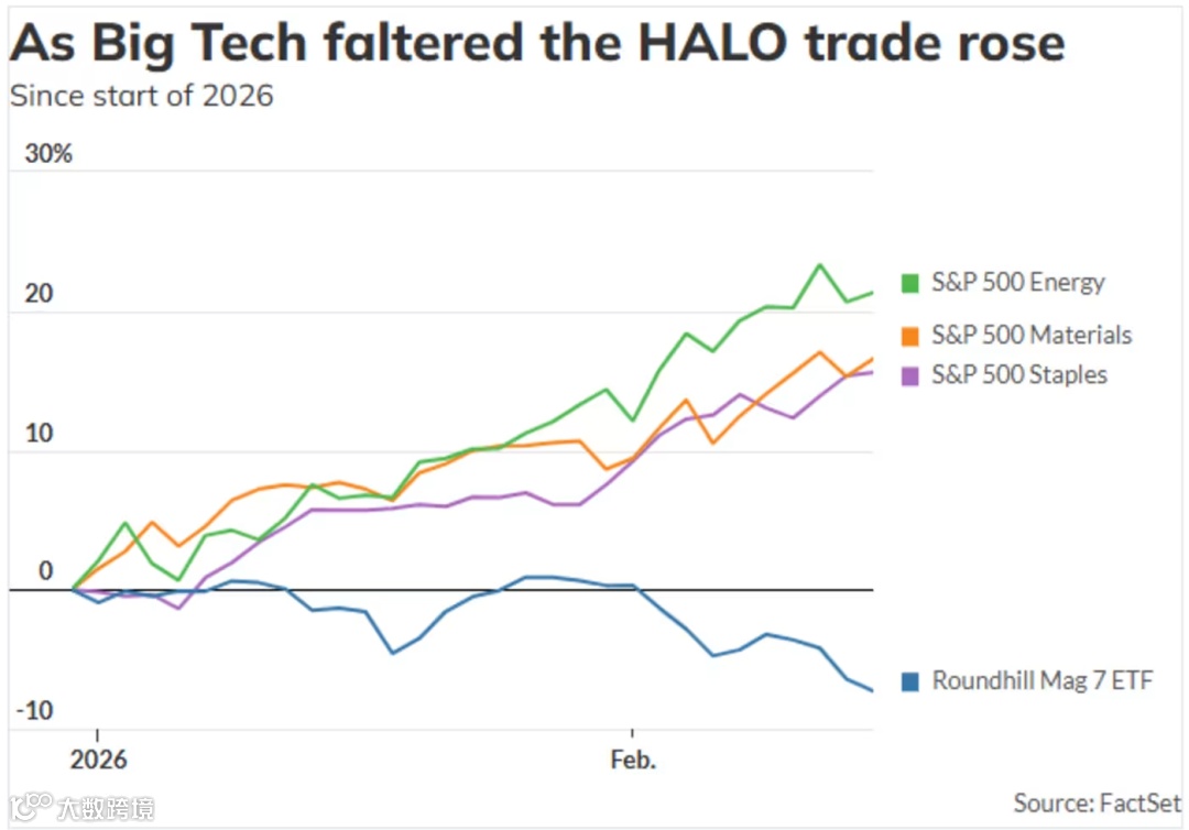 紧接着,摩根士丹利的交易台开始用 HALO 给客户推荐标的;巴克莱、美银的研究笔记里也出现了这个词。Axios、华尔街日报、CNBC 集中报道 ...