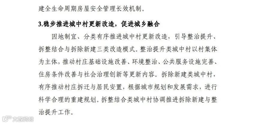 2025年8月底,国家在《关于推动城市高质量发展的意见》提及:稳步推进城中村和危旧房改造,支持老旧住房自主更新、原拆原建,持续推动城镇老旧小区改造。