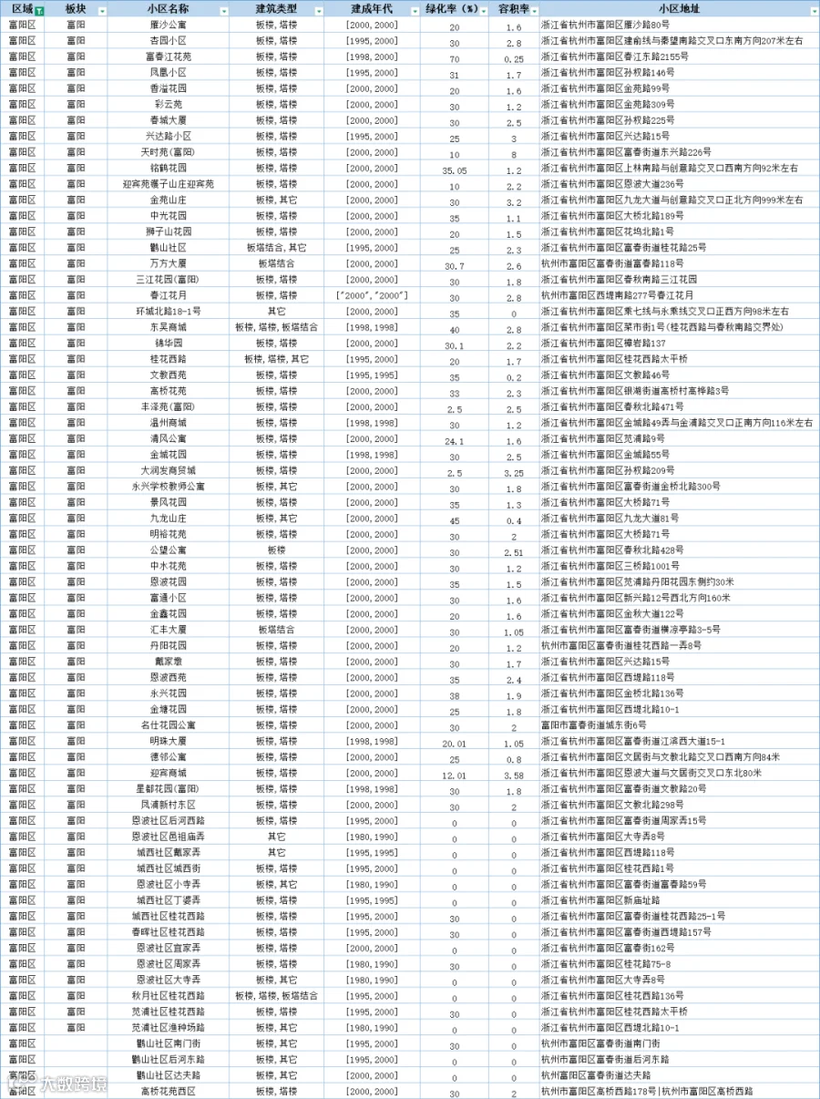 富阳区2000年及以前小区有68个,基本集中在核心区。