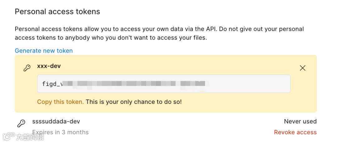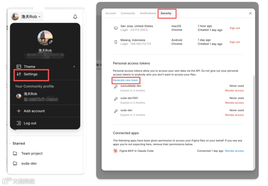 先在 Figma 中创建 token,有了这个 cc 才能有权限操作。