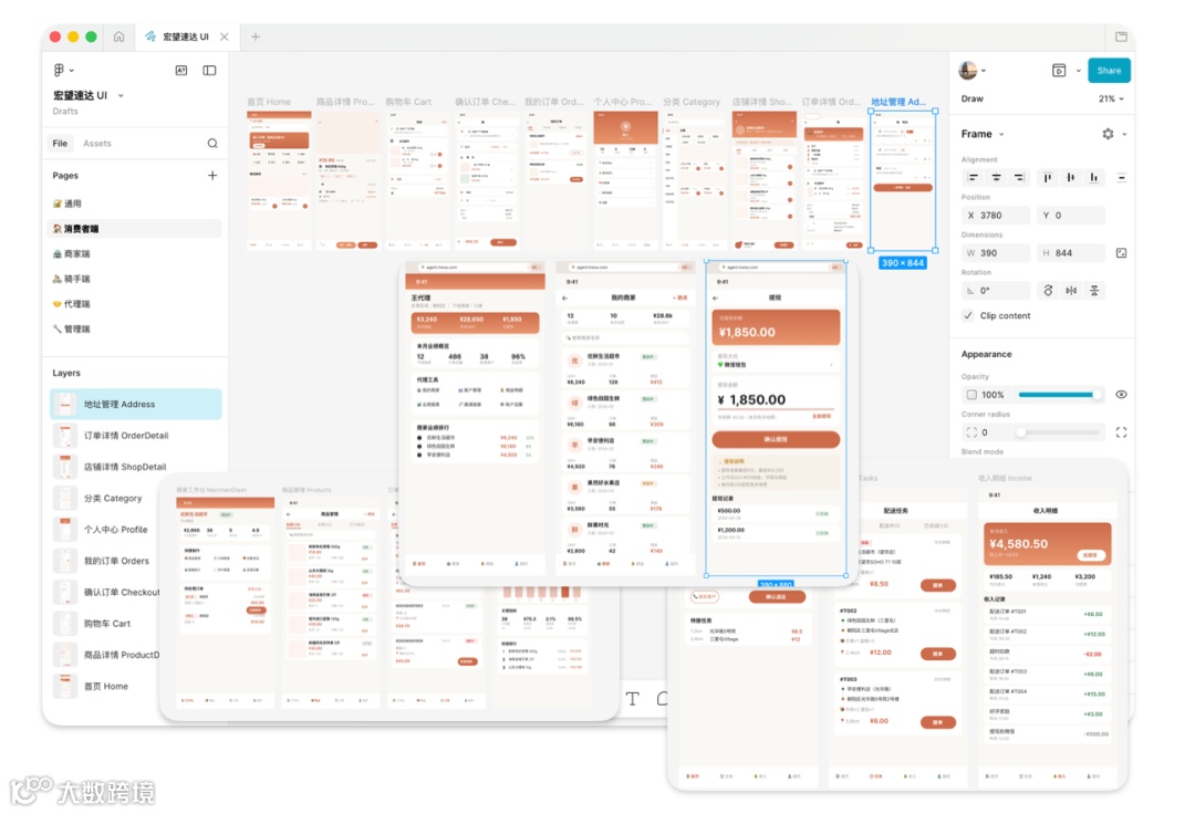 从登录页,到户用端,骑手,商家后台所有页面,都把 UI 设计得非常完整,虽然在审美上需要一些微调,但不妨碍我对他的赞美。