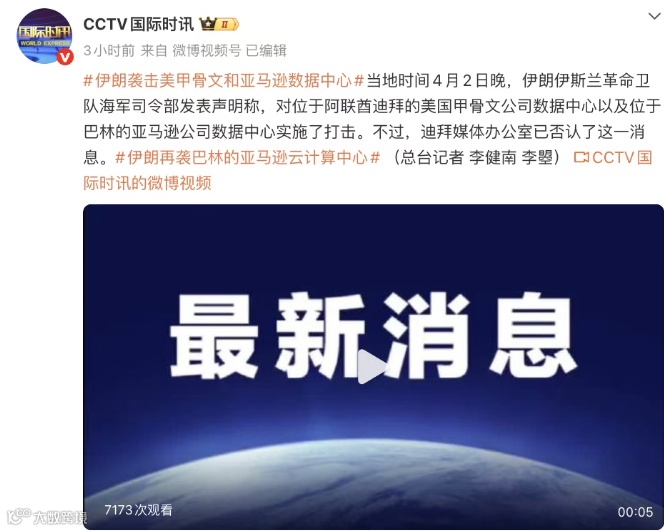 当地时间4月2日,伊朗伊斯兰革命卫队海军司令部宣布,已对位于阿联酋迪拜的甲骨文公司数据中心和巴林的亚马逊数据中心实施打击。这是中东地区首次将关键数字基础设施明确列为军事打击目标,标志着地区冲突进入新阶段。