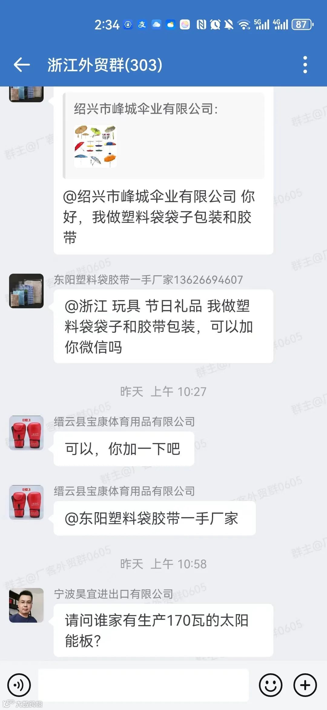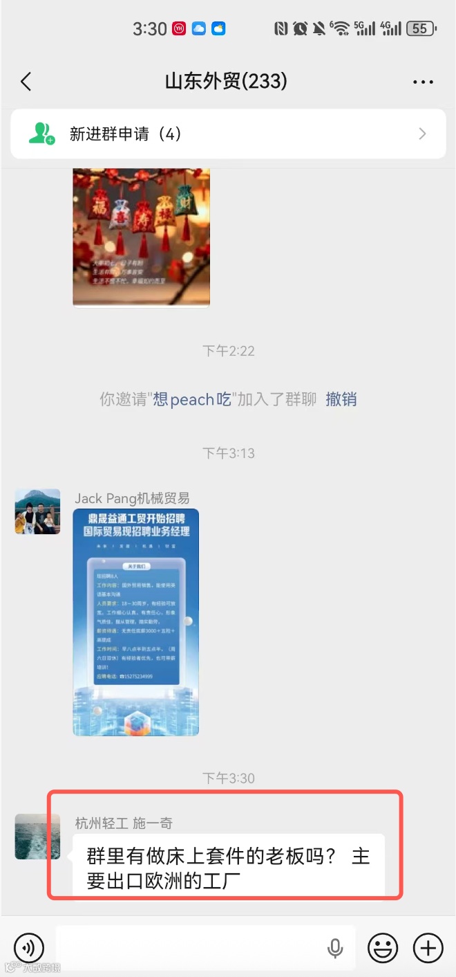 外贸连山东外贸群已汇聚230余位本地从业者,专注促进山东地区外贸资源高效对接。成员涵盖外贸企业主、生产厂商负责人及业务骨干,支持实时发布产品供应与采购需求信息,加速业务合作与商机转化。