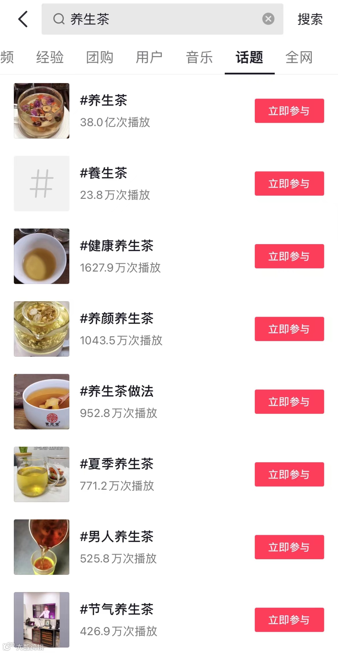 另外在抖音搜索与“养生壶”相关的养生茶,发现相关的话题播放次数很高,可以看出现代人很注重健康和养生,这已经成为一种热门的趋势。