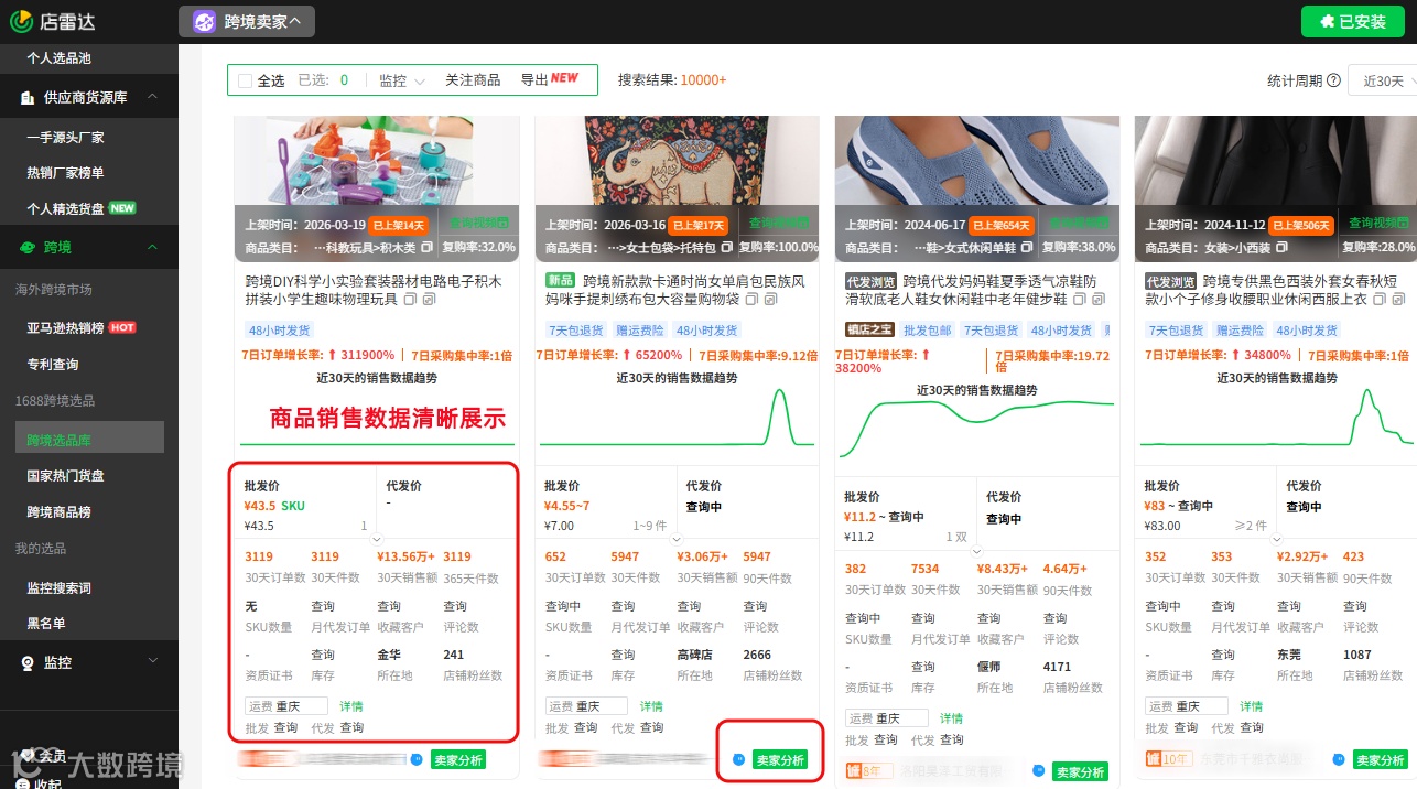 在Ozon后台,可以查看每季度、每月甚至每日的热门产品数据,借助产品销售排行榜,分析哪些产品销量较高,从而进行差异化选品并上架,通过数据把握市场趋势。此外,也建议使用店雷达多关注1688跨境供应商,许多成熟的跨境卖家在拥有稳定产品后往往不会及时更新,这时您可以主动联系供应商,获取最新的产品与商品信息,抢先上架。