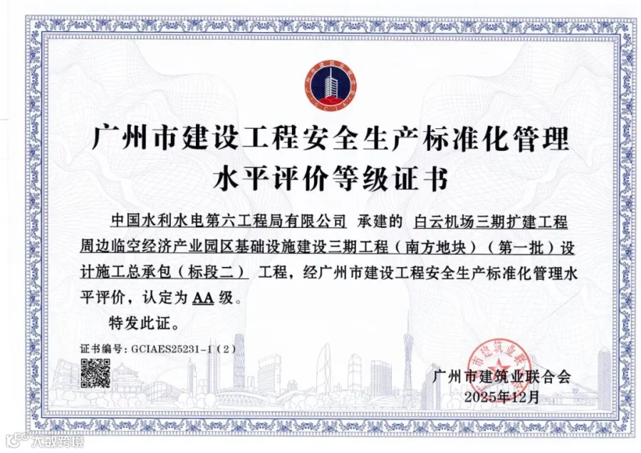 广州白云机场项目荣获广州市建设工程安全生产标准化管理水平AA级评价。 白云机场三期扩建工程是区域重点民生工程与战略工程,其周边配套设施的建设质量与安全管理水平,事关临空经济产业长远发展与城市功能提升。自开工以来,项目部始终将安全生产摆在首位,围绕“标准化、规范化、精细化”管理核心,构建起覆盖施工全过程的安全生产责任体系。从方案编制、隐患排查,到现场管控、应急保障,各环节均严格执行国家及广州市安全生产相关法规与标准,层层压实责任,严把安全关口,确保了工程建设零事故、管理水平持续提升。 |