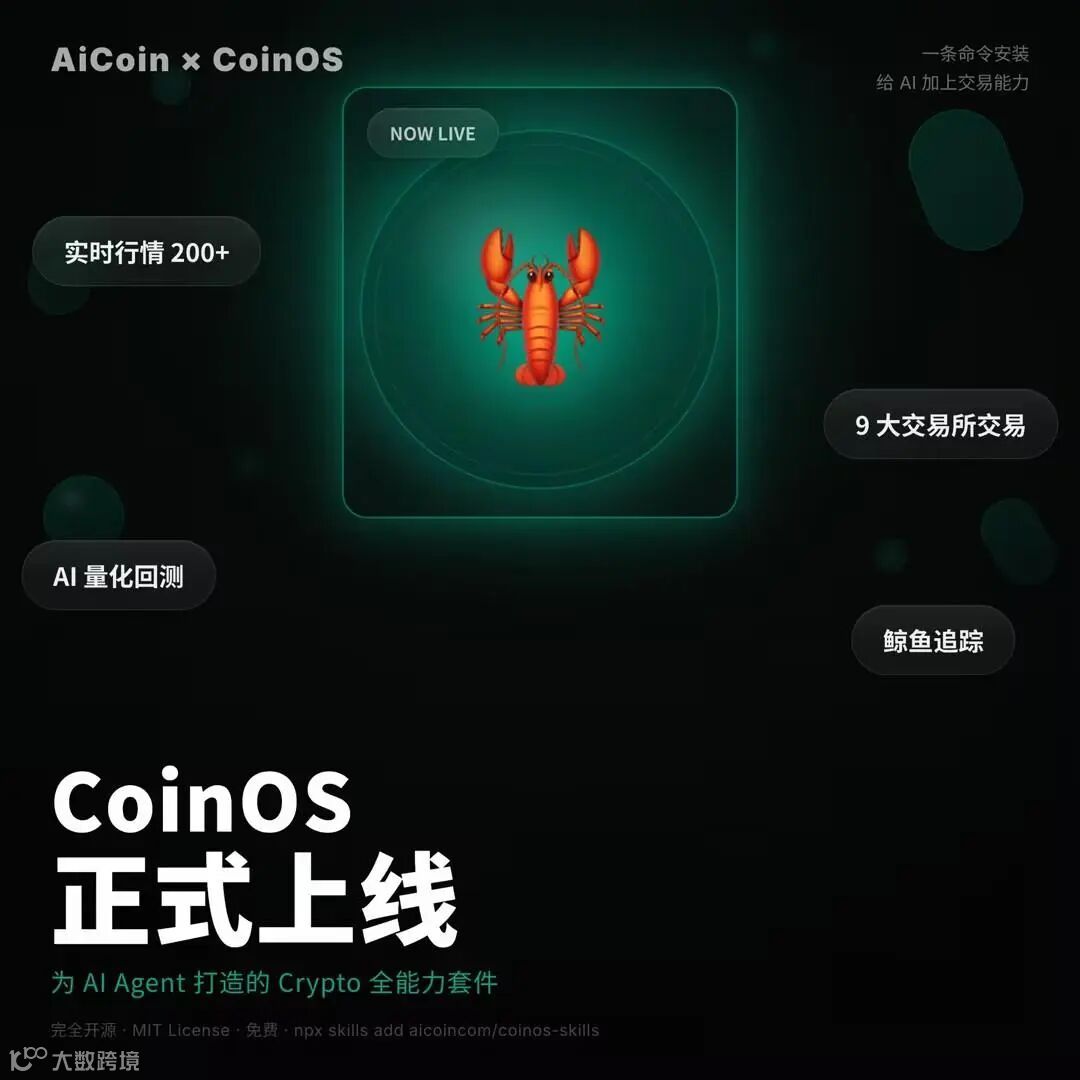 CoinOS 是 AiCoin 出品的 AI Agent 交易能力套件 —— 把 AiCoin 200+ 交易所的实时数据、9 大交易所的交易执行、Freqtrade 量化回测、Hyperliquid 鲸鱼追踪,全部打包成 5 个 Skill,一句话安装到你的 AI Agent 里: