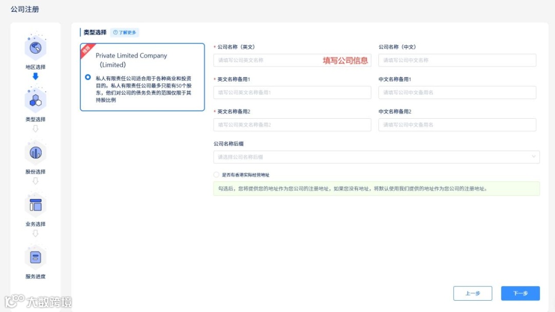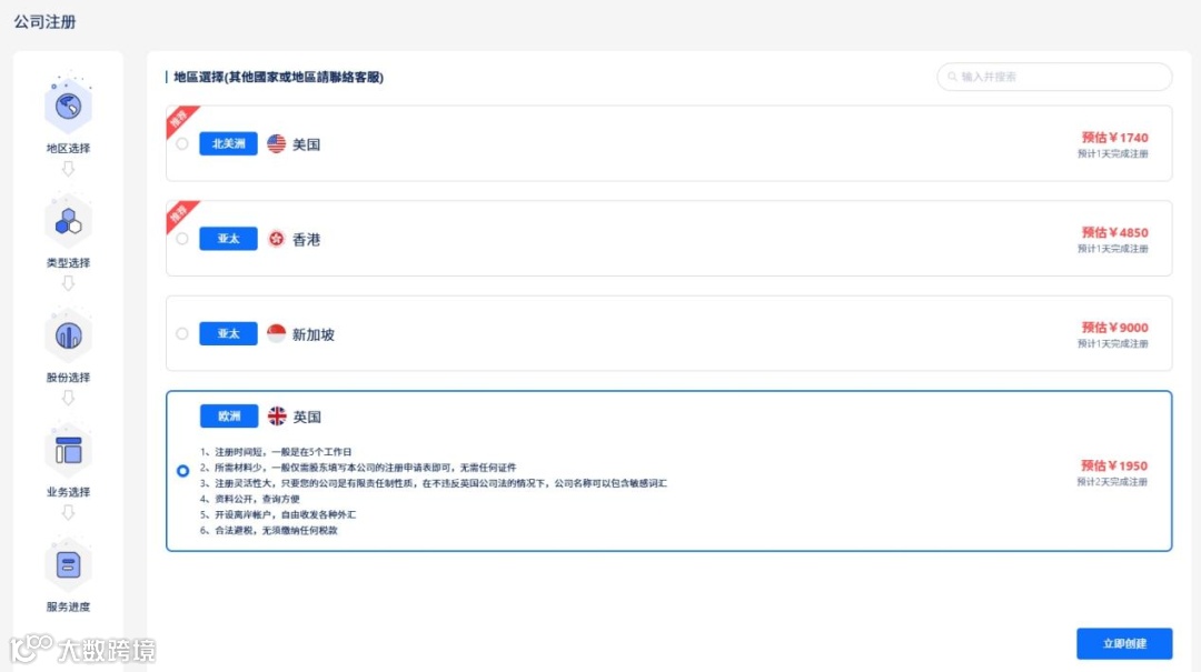 进入后台,选“英国公司”,系统就引导你一步步填写资料: