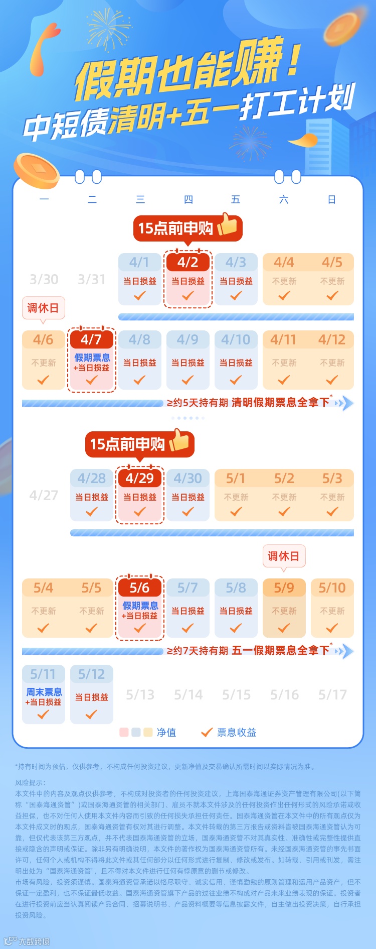 假期也能赚!中短债清明+五一打工计划 国泰海通资产管理订阅号