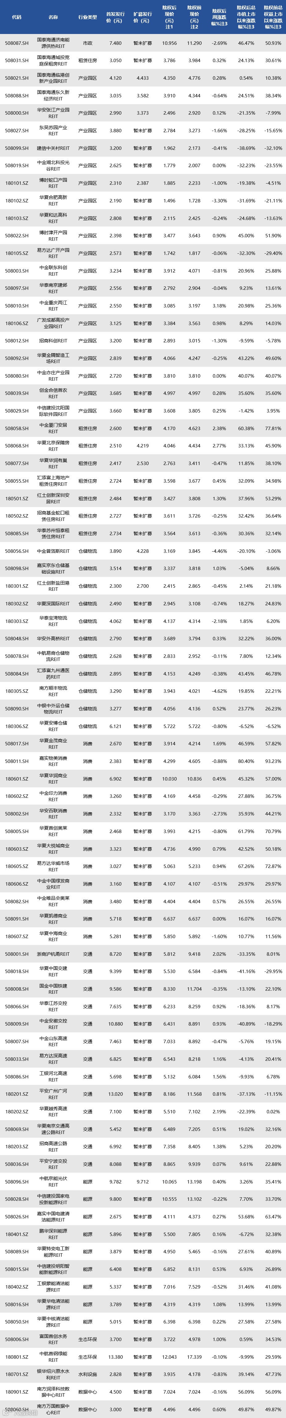 截至3月20日收盘,已上市79只REITs的收益率情况如下表所示: