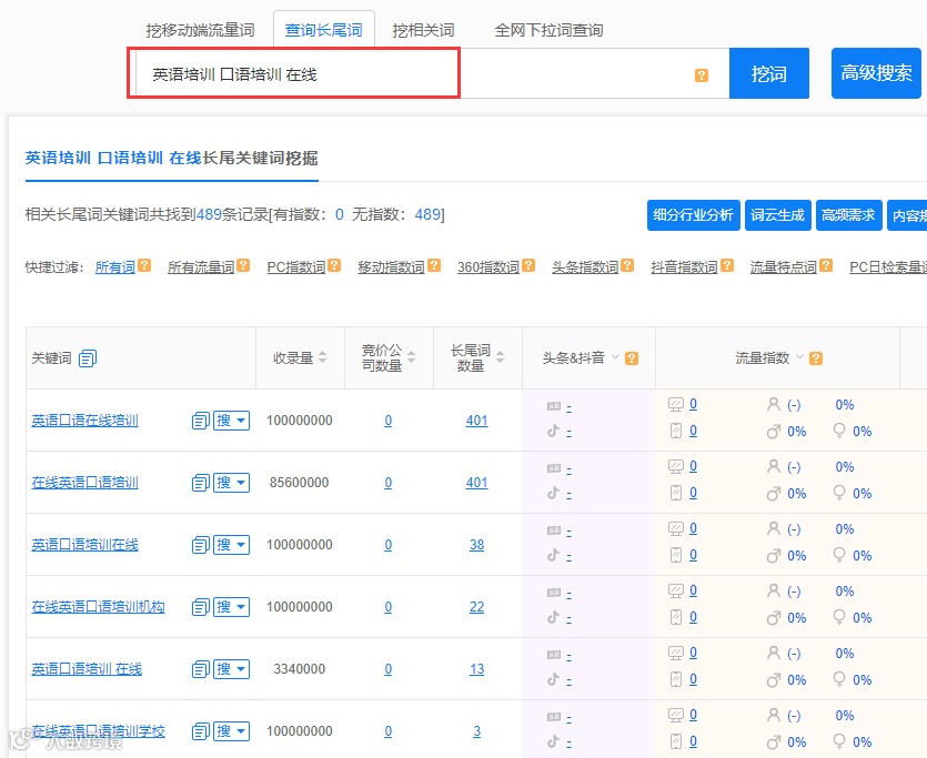 比如,英语培训对象仅限儿童,避免遗漏,将“儿童”的相关词“少儿”、“幼儿”等词,填入至“必须包含词”框中。
