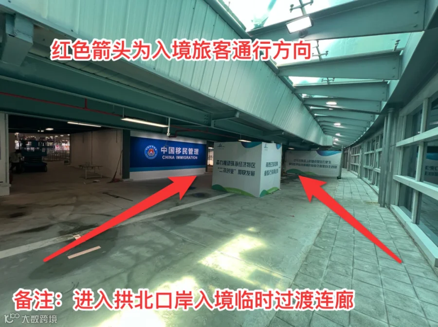 拱北口岸因旧建筑物安全隐患整改及通关大厅等配套设施改造工程施工需要,自2025年7月9日(星期三)早上6:00起,所有入境旅客将通过入境临时过渡连廊转入入境永久连廊北段通行(详见附图)。请广大旅客按照口岸现场通关指引有序通关。