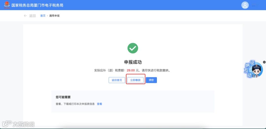 需注意的是:如更正后的应纳税款大于更正前的应纳税款,需点击“立即缴款”完成税款缴纳。