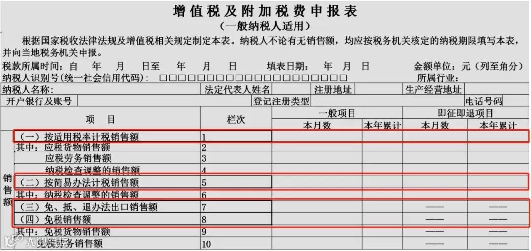 申报表行次、栏次填错(如应税项目填到免税栏)。