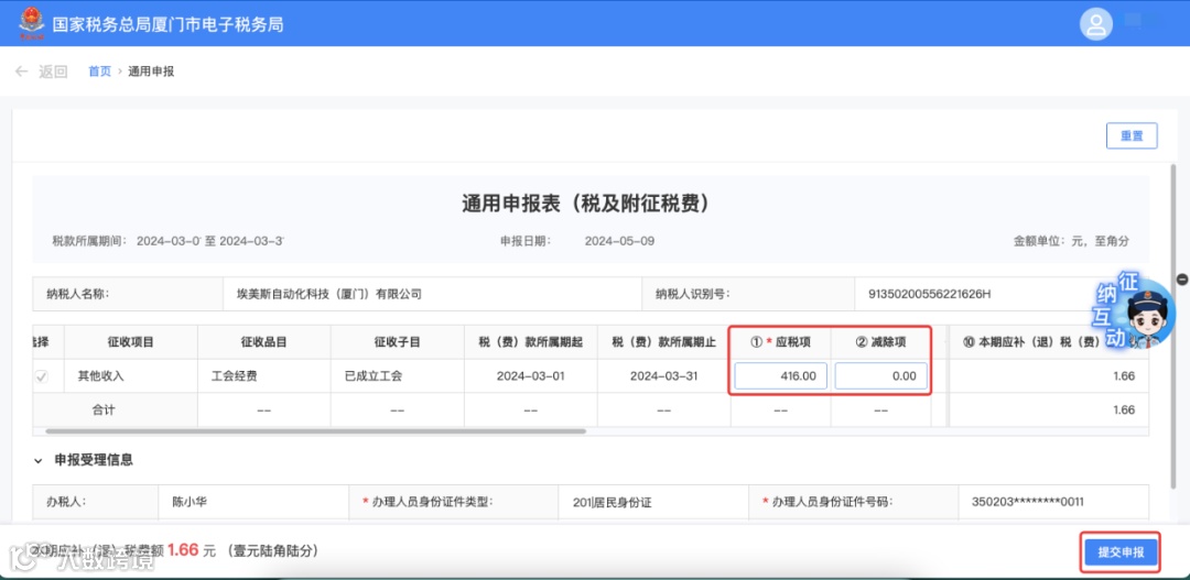 如更正后的应纳税款小于更正前的应纳税款,系统提示“实际应补(退)税额”为0。