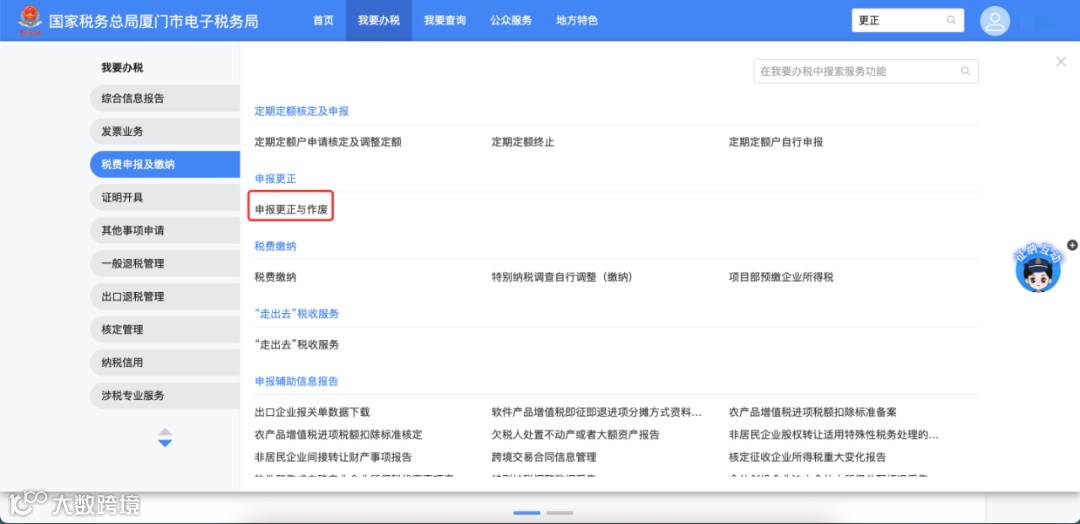 申报更正或作废时只能全量更正或者申报作废,不允许差额更正或补充申报。