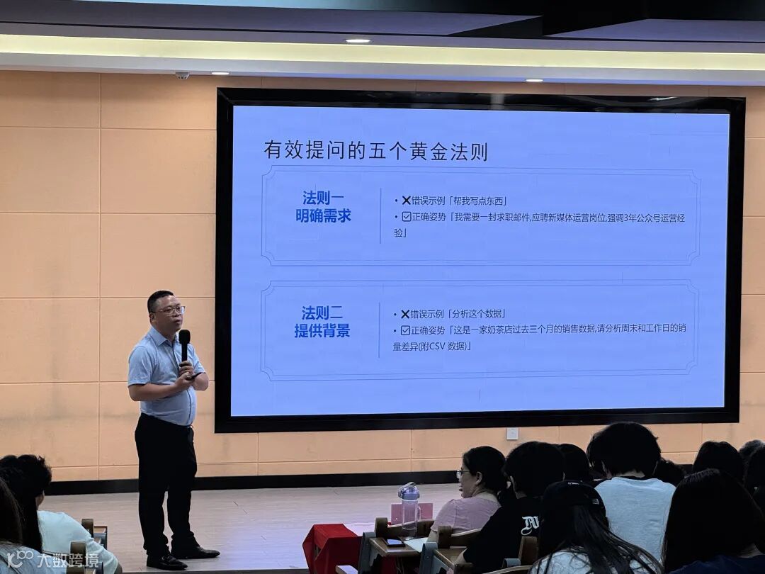 "同学们,AI不是科幻电影里的神秘存在,它已经渗透到我们生活的每个角落。"李伟青先生以轻松幽默的开场白打破了传统讲座的严肃氛围。
