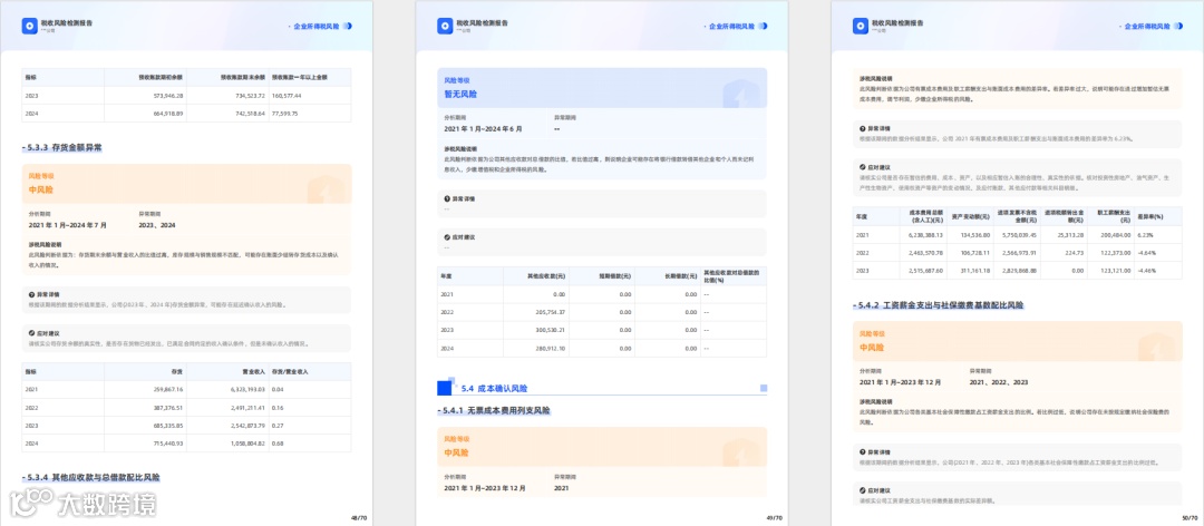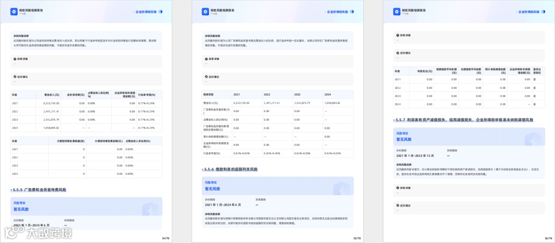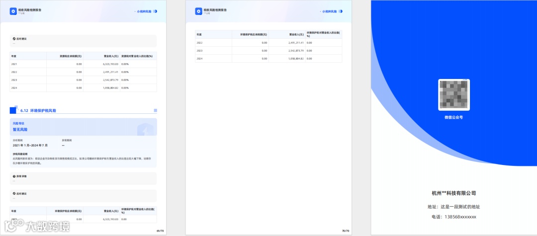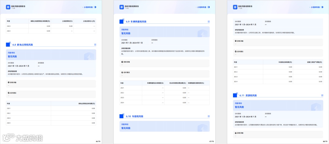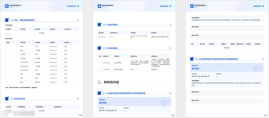 这一成果得益于我们专业的税务风险报告。报告覆盖全面,从企业基本信息到复杂税务风险都能精准剖析。企业基本信息板块,除常规信息,还提供股权穿透图、近三年纳税信用等级、专利商标备案信息,以及税务处罚、行政处罚和企业变更信息,为风险评估提供基础数据。