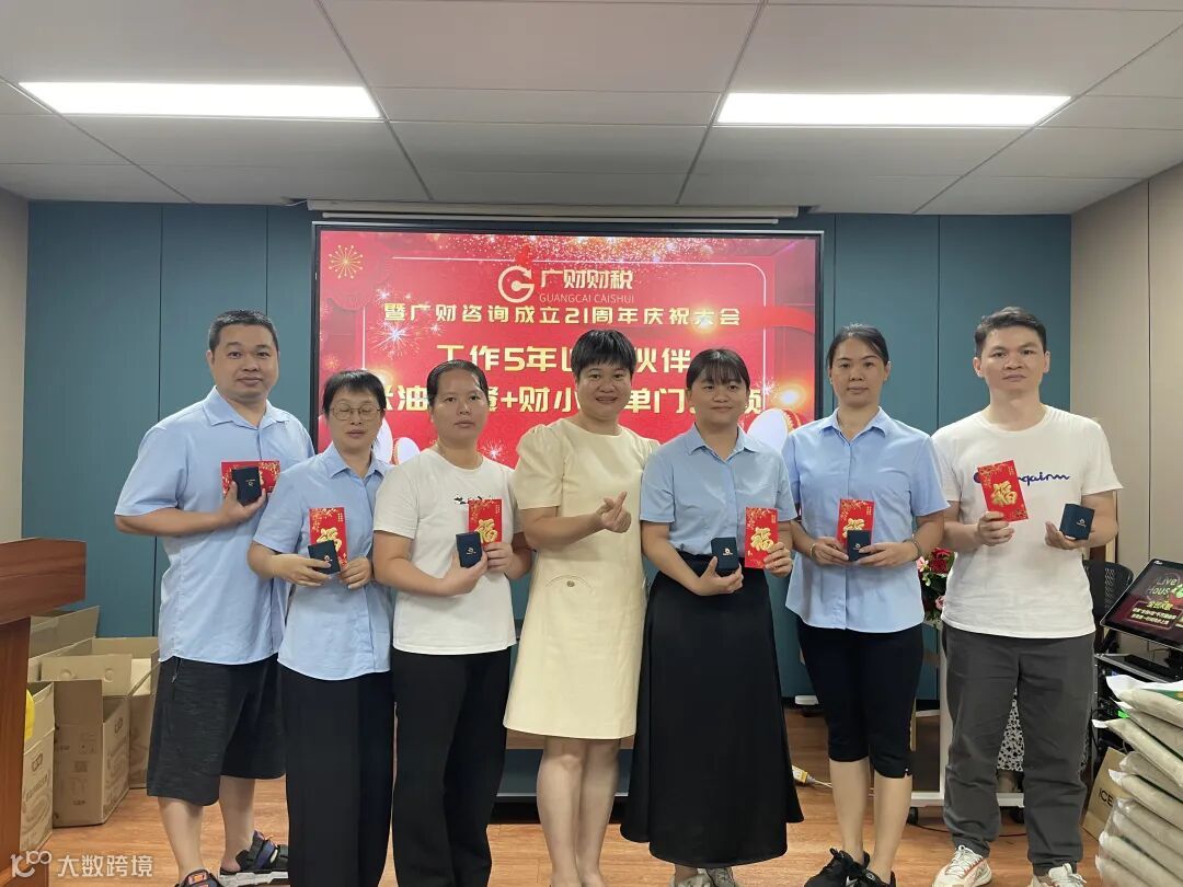 🎈5 - 10 年的伙伴们率先上台,他们在广财咨询的岁月里,留下了许多珍贵的回忆。公司为他们颁发了奖品🎁。