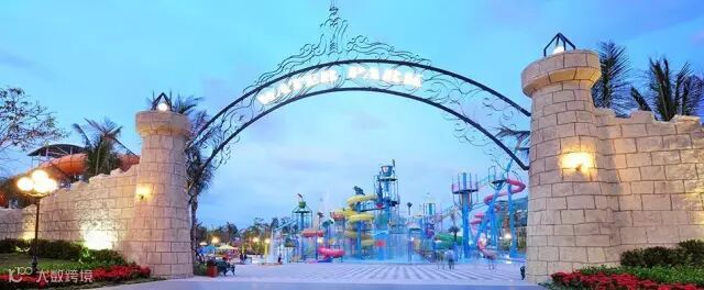 水上世界(Water Park)-- 滑梯,儿童池,造浪池,沙滩。水上乐园一进入便能看到沙滩,与海相连,长长的海岸线,沙子细软,踩着很舒服,一定要带着泳衣来哦。