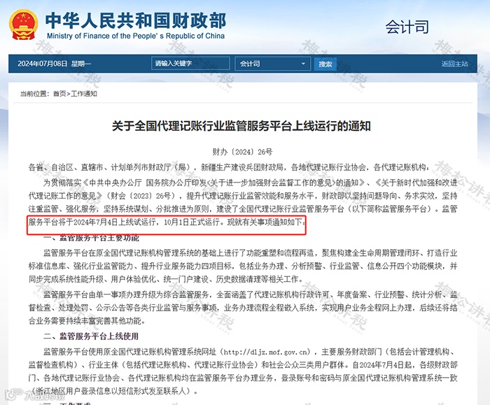 财政部已发布《关于全国代理记账行业监管服务平台上线运行的通知 》。