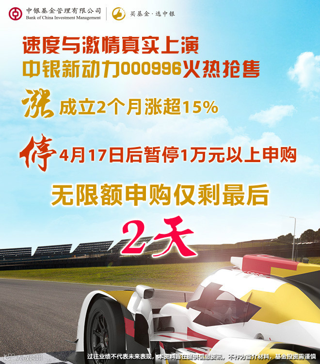 与激情真实上演,中银新动力000996火热抢售中,4月17日15时起暂停1万元以上大额申购,无限额申购仅剩最后2天!