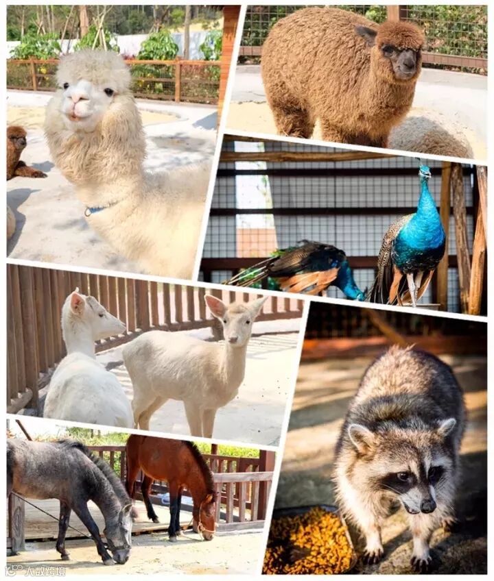 宠物天地有羊驼、孔雀、珍珠马、浣熊、宠物猪、乔恩羊、熊、鹿等十余种萌萌的小动物。
