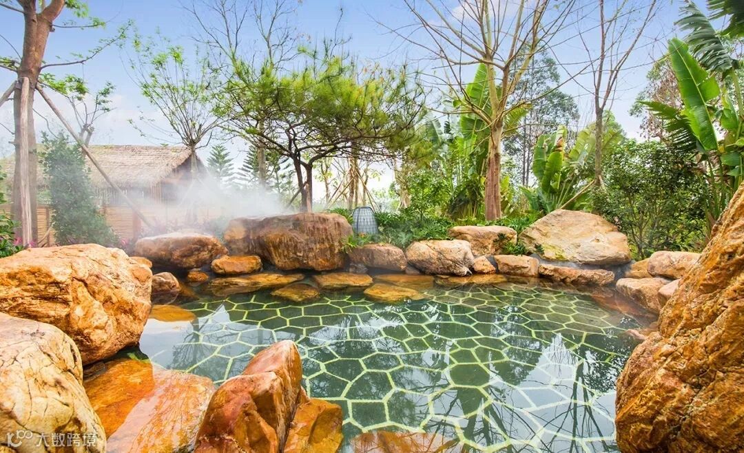 有46个特色泡池,水质清澈,温和柔润