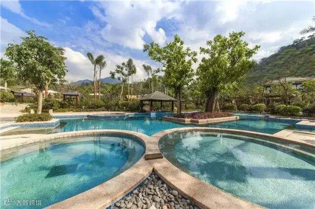 温泉园区拥有32种汤池,日出水量达到1000多立方,出水温度36℃至40℃。