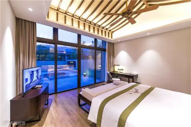 酒店客房面积54平米至200平米。客房床配置豪华人性化健康床垫及高档纺织品,客房枕头配置软硬调节枕,落地玻璃窗尽享优美热带园林景观。