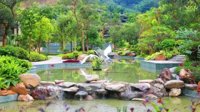 园区建筑构建亭廊、叠水理水、围湖凿池、时花艺树,、湖明水秀的风景,鸟语花香的境界,诗情画意的精髓,“鸢飞戾天者,望峰息心;经纶世务者,窥谷忘返”。
