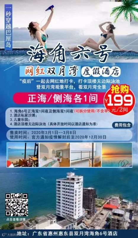 3、酒店地址:广东省惠州市惠东县双月湾海角6号酒店