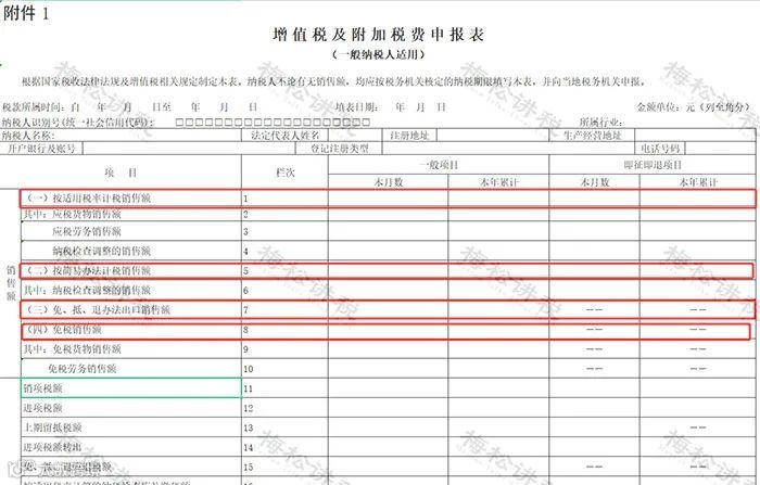 =(一)按适用税率计税销售额+(二)按简易办法计税销售额+(三)免、抵、退办法出口的销售额+(四)免税销售