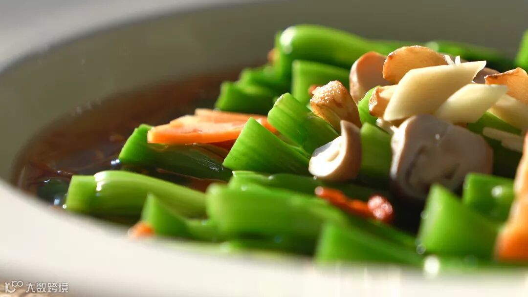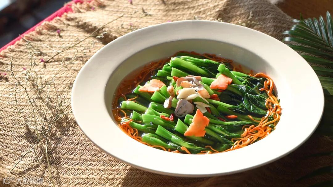 虫草花浸时蔬,橙黄色的“草”搭配青翠欲滴的新鲜蔬菜,既滋补又清润更解腻,肉食者们也要记得多吃青菜哦~