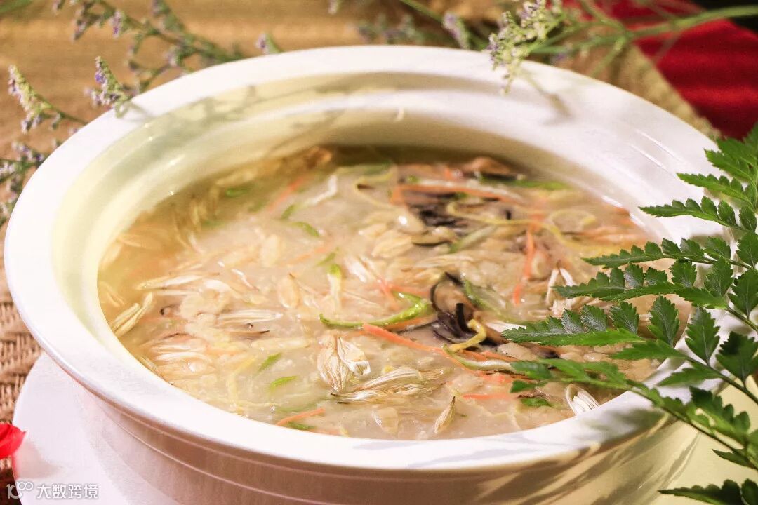 鱼茸羹,作为顺德“一鱼八味”的头菜,流传了近百年。飘香的菊花鱼茸羹,汤汁浓郁,每一勺都漂浮着若隐若现的菊花丝,用净白的瓷碗装起来,宛如一件花样艺术品。