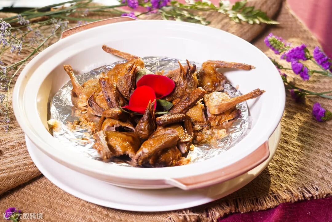 采用出生20天左右的幼鸽做成的熏乳鸽,肉质鲜嫩自不用说。将茉莉花与乳鸽同锅熏制,高温下茉莉花香与乳鸽充分融合,而乳鸽的骨也会变得非常酥软,吃着简直会令人上瘾。