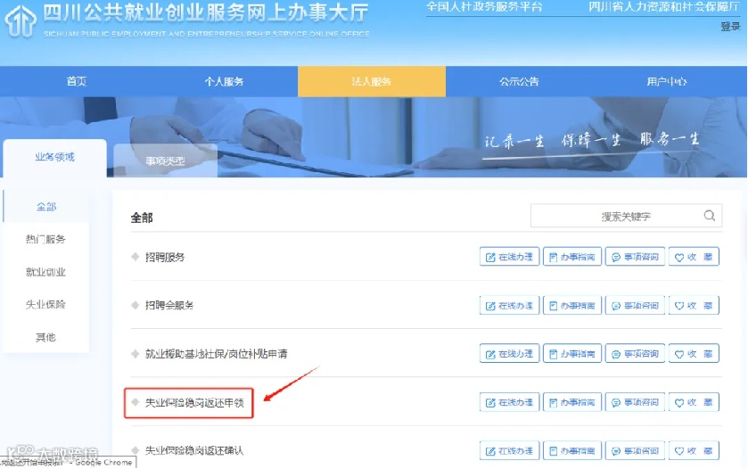 大部分参保单位可在“四川公共就业创业服务网上办事大厅”中的“失业保险稳岗返还确认”模块对单位信息进行确认。