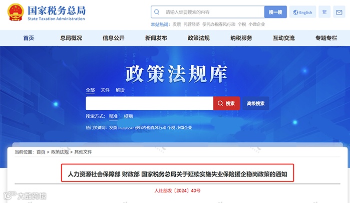 国家税务总局发布《关于延续实施失业保险援企稳岗政策的通知》。