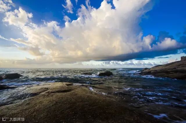 一睁眼观梦幻无敌海景蓝天白云下的海滩,宁静而迷人。