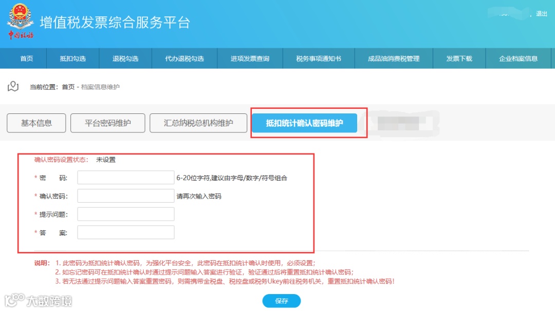 平台将自动跳转到确认密码设置的功能页面,纳税人可以自行设置确认密码,如图: