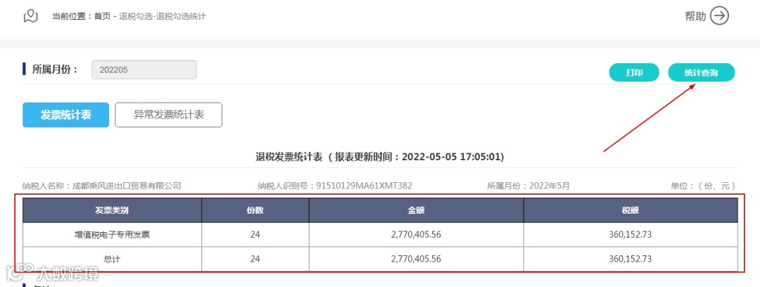该功能主要向用户提供:对当前税款所属期所认证数据进行统计申请,申请统计提交后实时统计;当前税款所属期可用于申报抵扣的发票汇总统计表及异常发票统计表;历史税款所属期发票统计表及异常发票统计表。